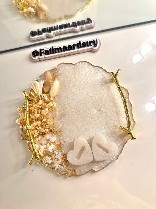 Our NEW 8" tray is the perfect little keepsake for your special day. Super cute, compact and beautifully handcrafted with real dried flowers. This tray adds a touch of elegance to your Nikkah or wedding ceremony. Designed to hold your rings securely and stylishly, it also makes a timeless keepsake you can display long after your big day.
