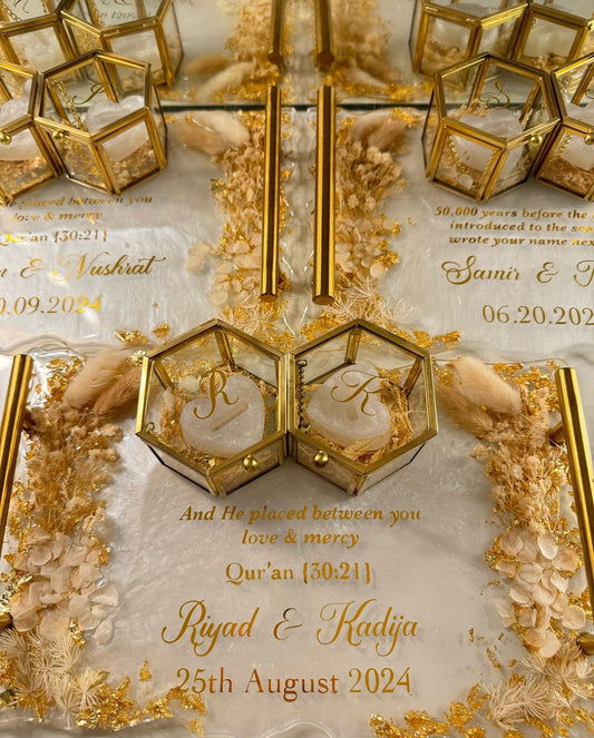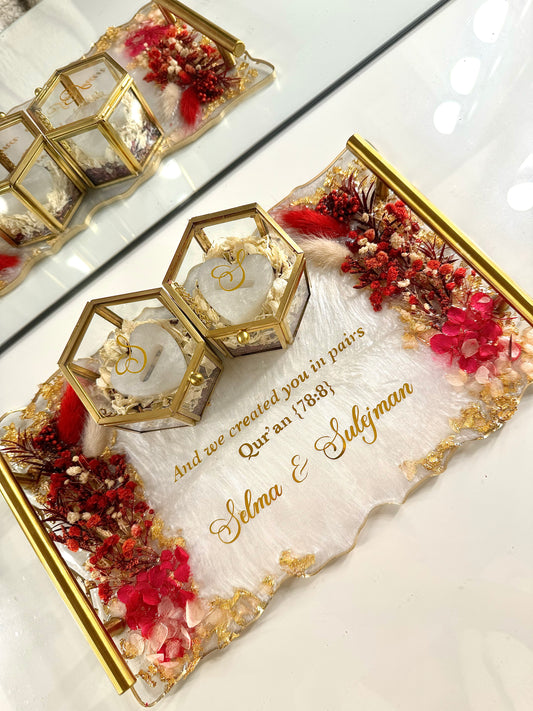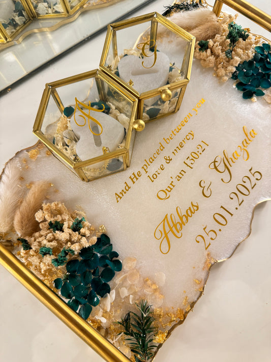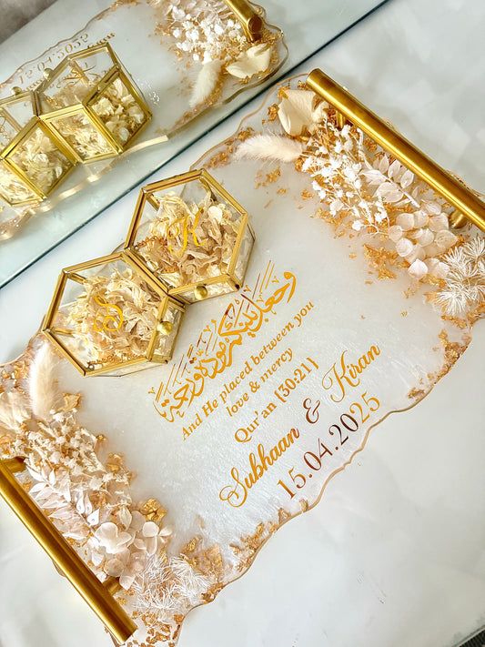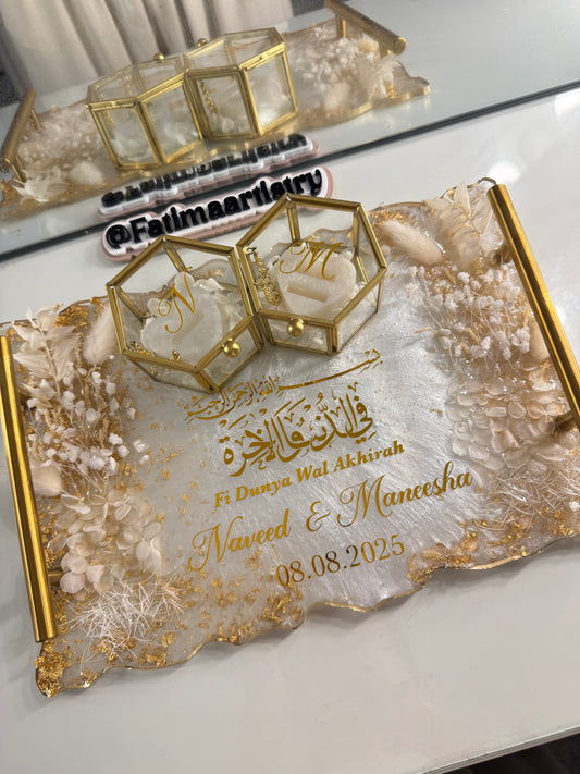 I have now received the plate & the ring boxes & all I can say is wow Allahumabarik! It is beautiful, it is so much more regal in real life. I honestly cannot get over how nice it looks m’A. Jazak’allah so much and I’m so glad I trusted you with this order! Xx -