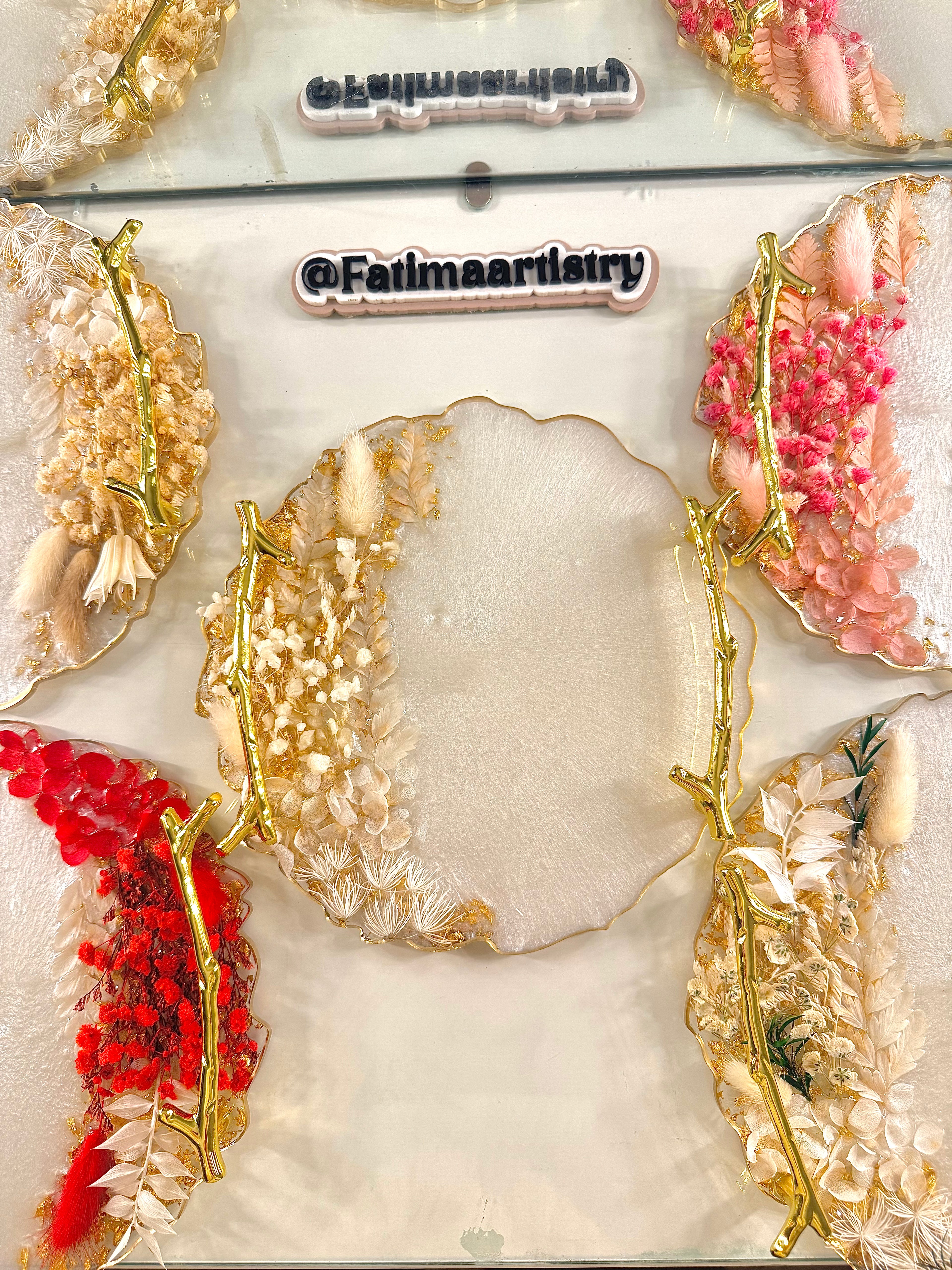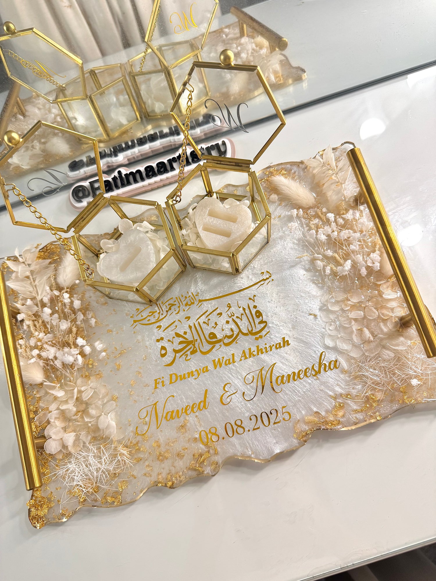 Our NEW 8" tray is the perfect little keepsake for your special day. Super cute, compact and beautifully handcrafted with real dried flowers. This tray adds a touch of elegance to your Nikkah or wedding ceremony. Designed to hold your rings securely and stylishly, it also makes a timeless keepsake you can display long after your big day.